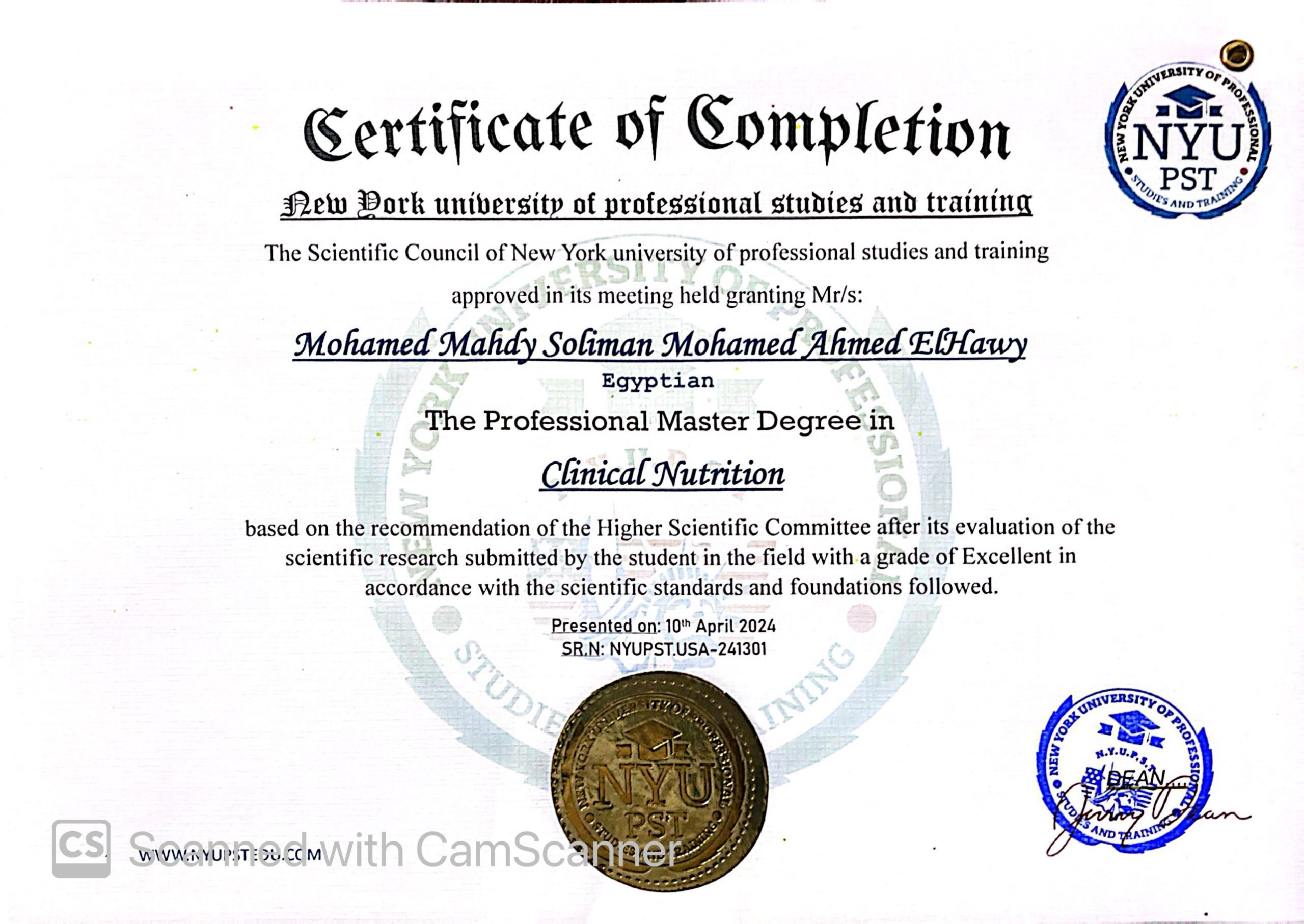 Mohamed Mahdy Soliman Mohamed Ahmed ElHawy NYUPST.USA-241301